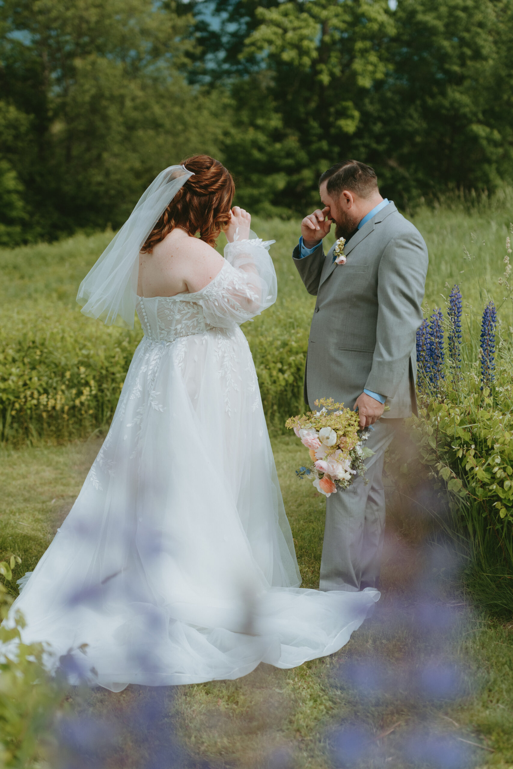 Take a peek into Emily and Kyle’s stunning Sunset Hill Elopement day. Complete with some sun towards the end of the night and lupines all around them.